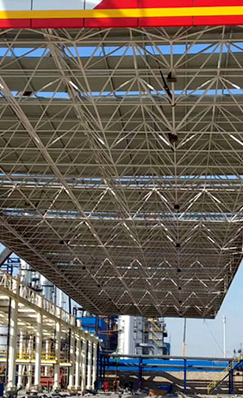 選用優質的原料才是進行螺加油站網架設計首先要選擇的,這包括鋼材的硬度要高、無裂縫,具有很好的抗壓效果。